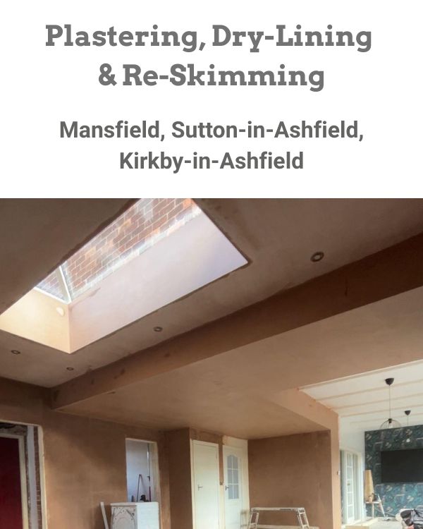 We provide plastering, re-skimming and dry-lining to customers in and around Nottinghamshire and parts of Derbyshire, covering areas such as Mansfield, Kirkby-in-Ashfield, Sutton-in-Ashfield, Hucknall and Worksop .